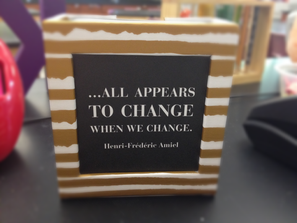 Much like my tea ‘tags’, I also keep this awesome quote display on my desk. I bought this at Target over the summer on a whim and have loved having it at my desk. It has enough cards in the box to have one for each day of the year. As of right now, I am just leaving quotes in there until I feel that I need something new to ponder. I often read them to my students and now they will sometimes ask me if I have changed the quote on my desk and they want to know what it says. (They also have the same curiosity about my tea tag quotes. Whenever they see me drinking tea the ask, “What does your tea say??”)